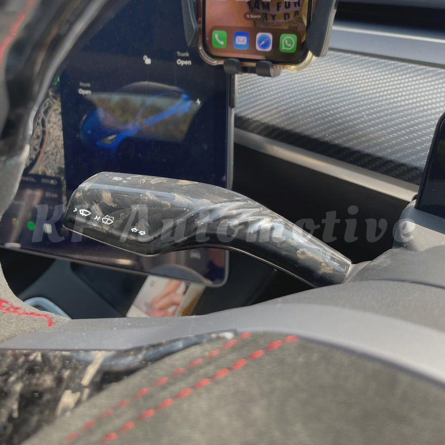 Model 3/Y Gloss Forged Carbon Indicator Stalk Cover with Spiral Effect
